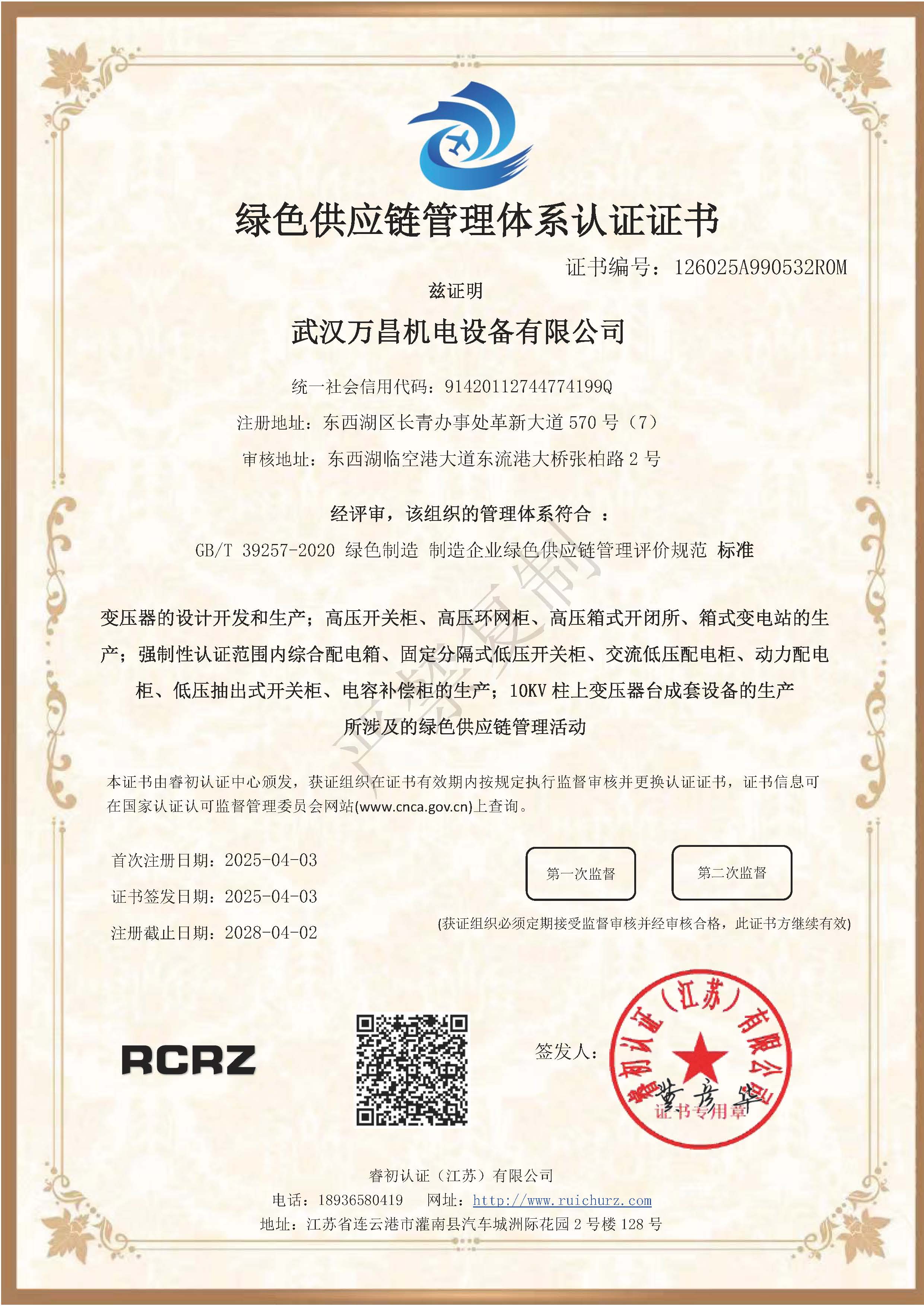 綠色供應(yīng)鏈管理體系認(rèn)證證書(shū)