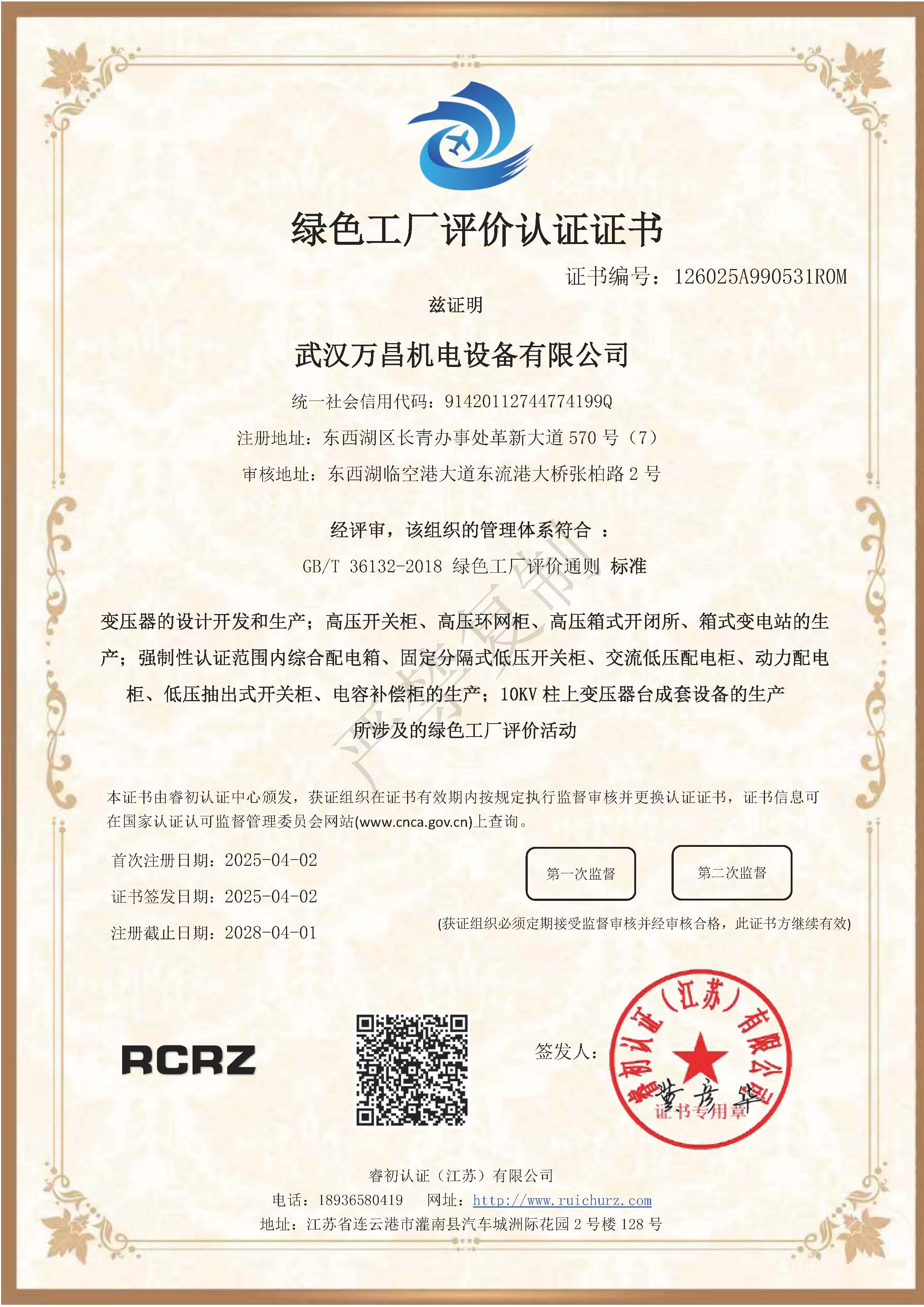 綠色工廠評價認證證書